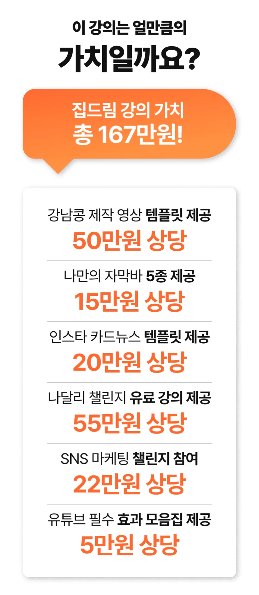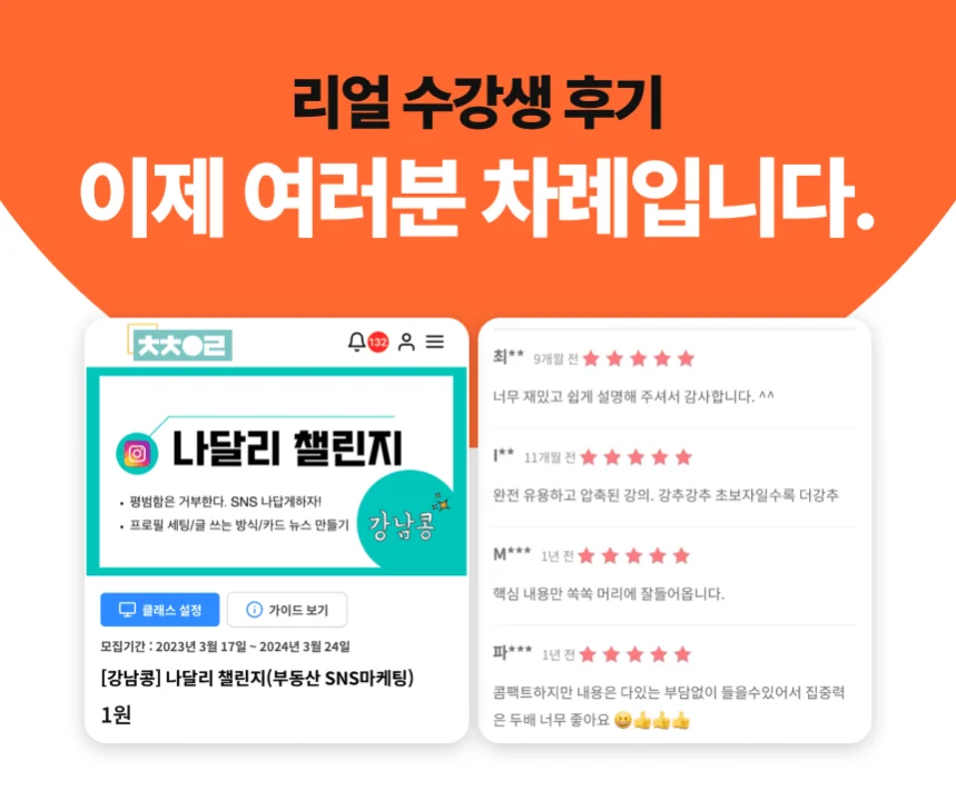 - 강사는 수강생 전용 단톡방을 벗어난 개인적인 컨설팅이나 상담은 원칙적으로 진행하지 않습니다.